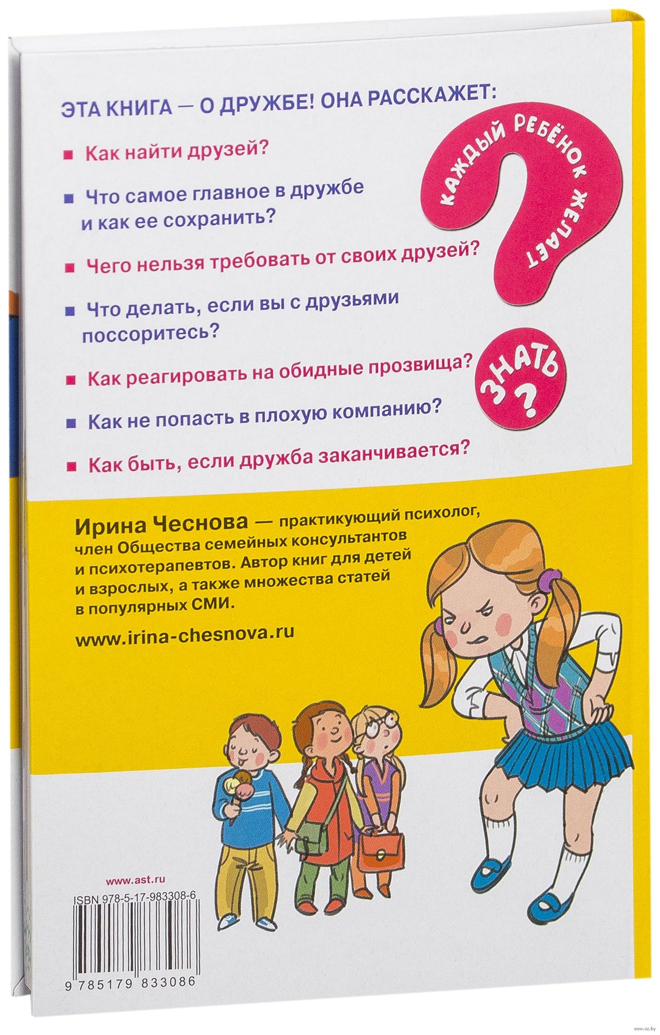 В своей новой книге, обращенной к младшим и средним школьникам, известный семейный психолог Ирина Чеснова раскрывает тему дружбы и общения со сверстниками. Как найти надежных, преданных друзей и отличить настоящую дружбу от ненастоящей? Как знакомиться с теми, кто интересен, и как быть, если на твое предложение о дружбе не откликнулись? Что делать, если вы с друзьями поссорились?