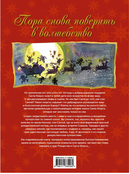 Эта очаровательная книга, прекрасно иллюстрированная Биллом Сенкевичем, одним из величайших художников комиксов всех времён, заставит вас снова поверить в чудо Рождества и Санта-Клауса…