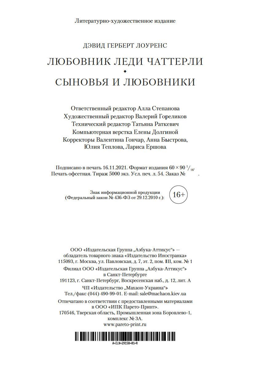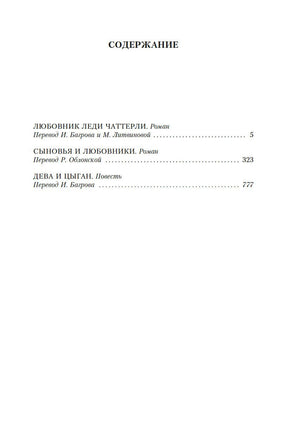 В настоящее издание вошли два лучших романа писателя – "Сыновья и любовники" и "Любовник леди Чаттерли", а также повесть "Дева и цыган".