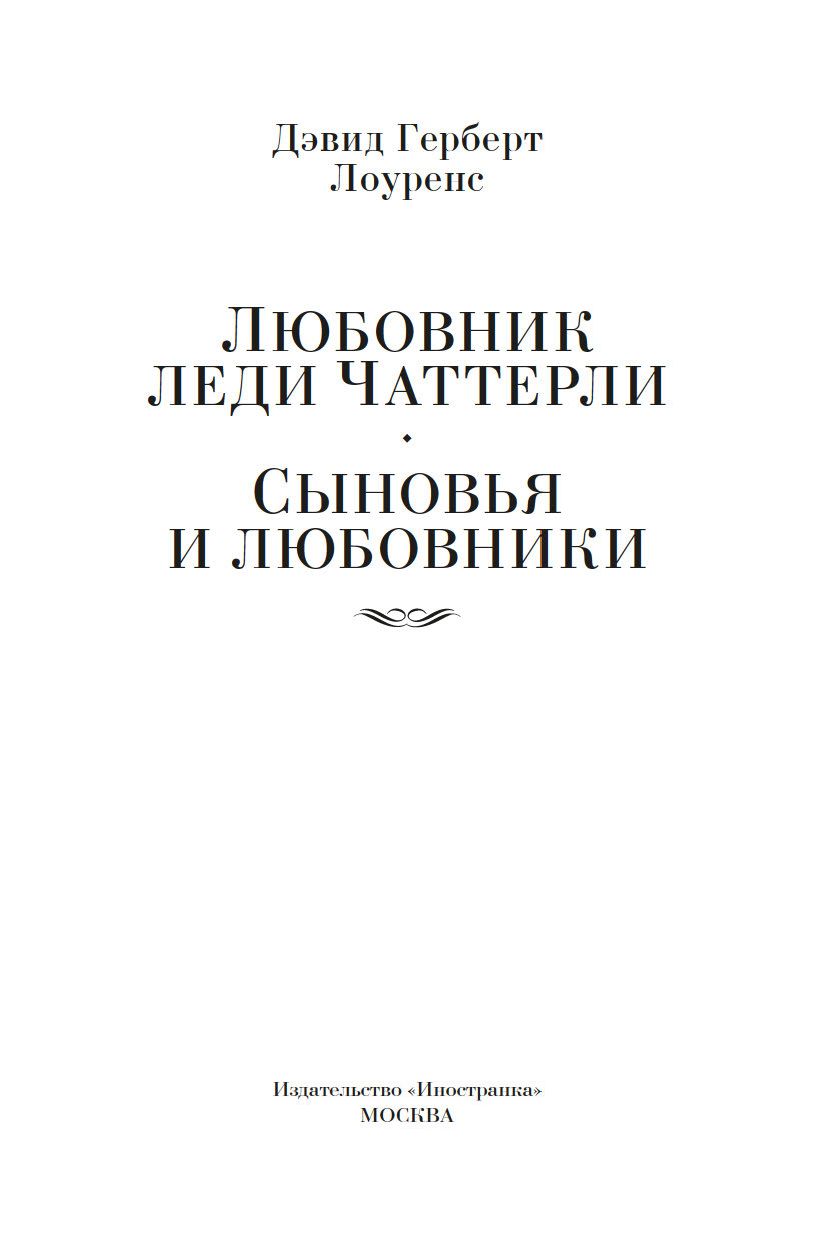 Любовник леди Чаттерли. Сыновья и любовники. Лоуренс Д.