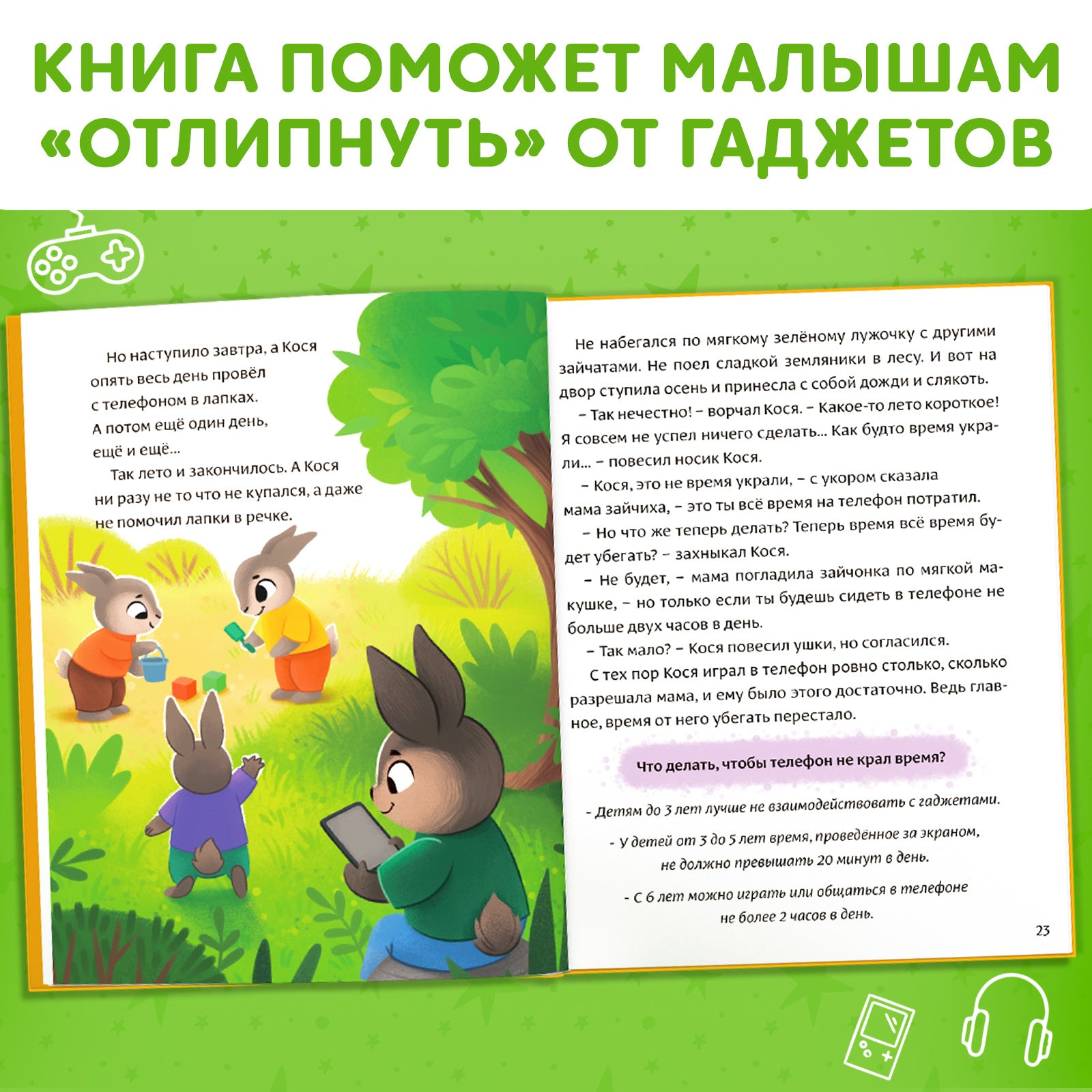 • Книга научит вашего малыша правильно обращаться с гаджетами и подскажет, как не попасть в зависимость от устройств.