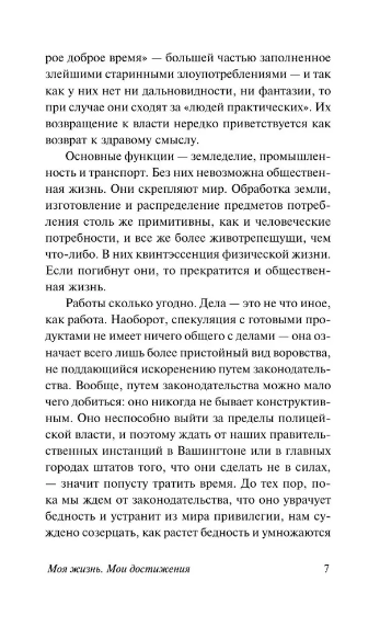 Книга "Моя жизнь. Мои достижения" (выдержавшая более сотни переизданий по всему миру, в том числе и в СССР) — это живая и захватывающая история человека, влюбленного в свою работу, ставшую для него источником вдохновения и смыслом существования. Форд раскрывается в ней не только как гениальный бизнесмен, изобретатель, инноватор и инженер, но прежде всего — как увлеченная личность, для которой работа стала делом всей жизни. Как прирожденный боец, который не боялся ни тяжелого труда, ни риска, выигрывал и ошибался, терял все и начинал заново, упорно, шаг за шагом приближаясь к воплощению своей мечты.