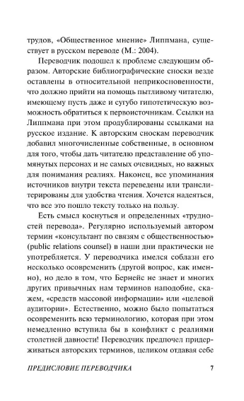 Реклама — двигатель торговли. Но как убедить искушенного потенциального потребителя, что ему необходимо приобрести товар, сходить на фильм, проголосовать за политика, потратиться на благотворительную кампанию? Тут-то и вступает в дело гениальная идея пиара, ассоциирующая для каждого представителя той или иной социальной группы определенный товар, личность или услугу с не менее определенной идеей или комплексом идей. А вот как конкретно преуспеть в данной непростой сфере деятельности, рассказывает в своей книге великий пиарщик Бернейс, научивший, среди прочего, и богачей, и бедняков начинать день с яичницы с беконом, а феминисток всего мира, увы, курить сигареты.