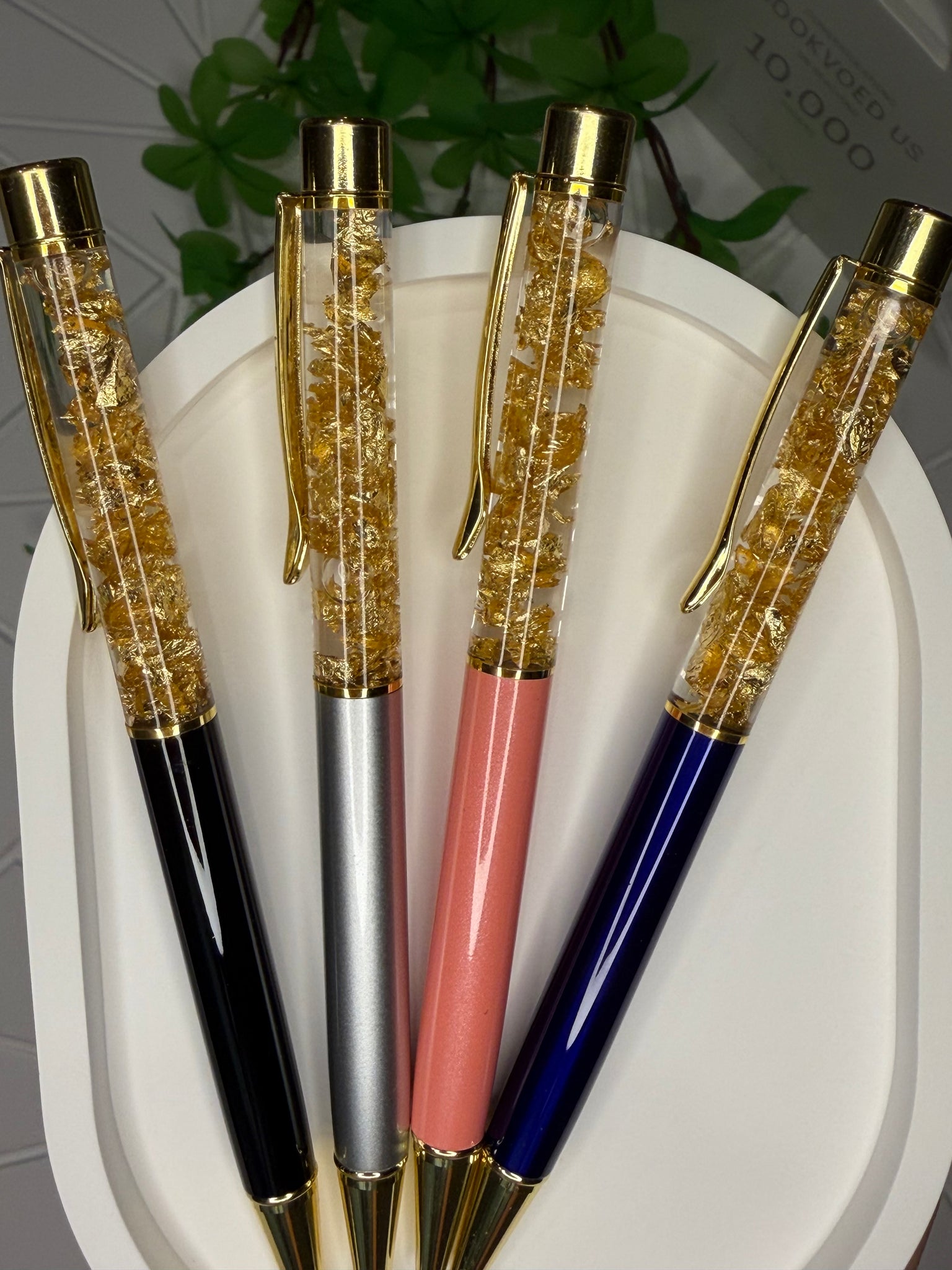 Внутри каждой ручки — переливающиеся золотые хлопья, которые мягко двигаются при движении, создавая эффект “живого” блеска ✨