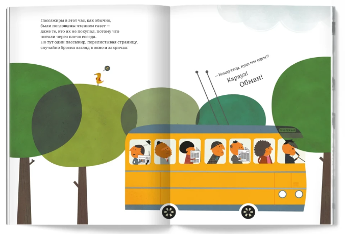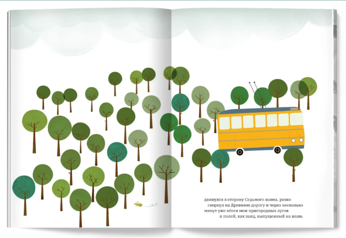 Он увозил взволнованных пассажиров всё дальше от привычной городской суеты к бескрайним полям и весеннему лесу...   Перевод: Михаил Визель Иллюстрации: Бланки Гомес