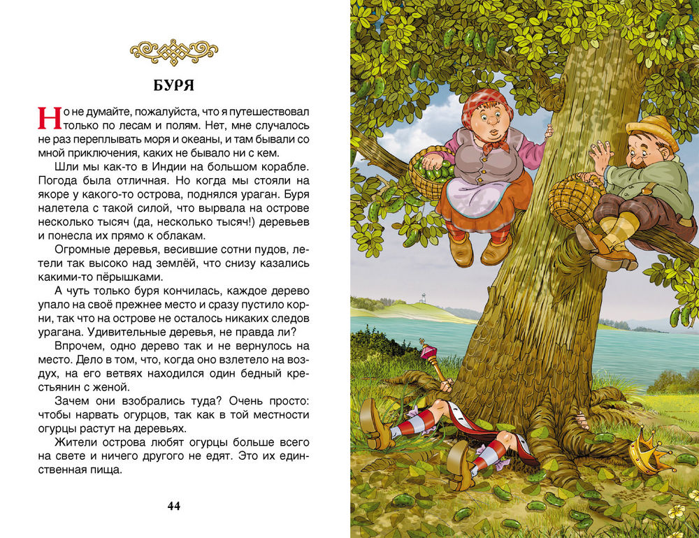 Барон Мюнхаузен отличается невероятной храбростью и находчивостью. Он найдет выход из любой ситуации: вытащит себя за волосы из болота, перепрыгнет через забор, держа на руках живую лошадь, и не побоится полететь на пушечном ядре. И хотя никто не верит в правдивость его историй, неунывающий герой вот уже больше двух столетий остается любимцем детей и взрослых.