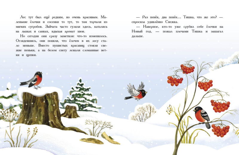 Вот и наступила зима. Землю укутало снежком, на окнах мороз нарисовал причудливые узоры. А значит, скоро Новый год! Зайчата Тишка и Снежка решили отправиться в лес за ёлочкой. Только в лесу уже кто-то похозяйничал: кругом одни пеньки и щепки. Так и ёлочек в лесу не останется! Что же делать маленьким зайчатам? Как встречать Новый год без ёлочки? Но беда – не беда, если рядом есть мама, мудрый ёж и добрые друзья! Эта детская книга Ольги Камышевой входит в серию “Детская художественная литература”.