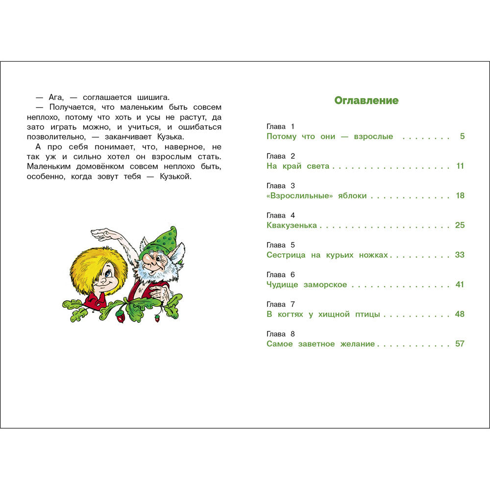 Сказочная повесть Галины Александровой о приключениях маленького домовёнка из серии “Библиотека школьника”. Увидел однажды Кузька, как девочки во взрослых играют. И так ему захотелось самому взрослым поскорее стать! Будет у него тогда борода, все уважать cтанут, совет спрашивать. Но как же поскорее вырасти? Может, есть яблоки “взрослильные”, или зелье у Бабы Яги? Домовёнок готов на всё!