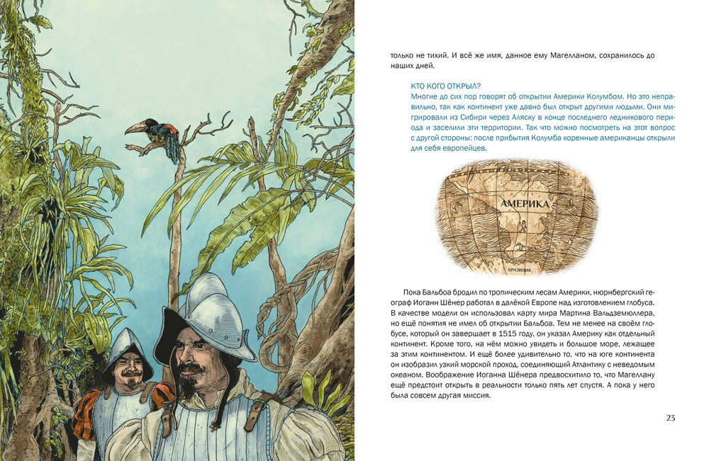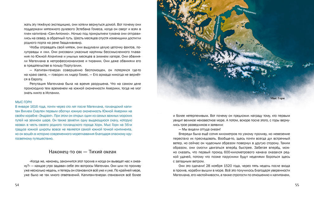 В 1519 году флотилия из пяти кораблей, на борту которых находилось 265 моряков, отправилась от атлантического побережья Испании к легендарным «Островам пряностей». Её капитаном был португалец Фернан Магеллан — блестящий мореплаватель и целеустремлённый исследователь. 6 сентября 1522 года одинокое судно, изъеденное червями, возвратилось на родину. На борту находилось 18 измождённых матросов. Магеллана среди них не было… Обычная исследовательская экспедиция Магеллана превратилась в грандиозное кругосветное плавание длиной в три года. Эта книга отправляет нас в большое путешествие, полное опасных приключений и великих открытий!