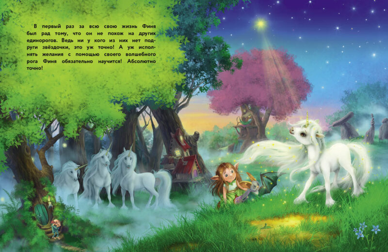 А вы знаете, что все единороги могут исполнять желания? Ну то есть почти все. Маленькому единорогу по имени Финя это пока не слишком хорошо удаётся. Зато у него есть верные друзья: летучая мышка Калле и девочка-эльф Трикси. Вместе им любое дело по плечу, и они всегда готовы прийти на помощь. В этот раз нужно срочно узнать, что случилось с лесным озером, воды которого затопили деревню троллей. Волшебство здесь бессильно. Значит, Финя, Трикси и Калле обойдутся без волшебства…