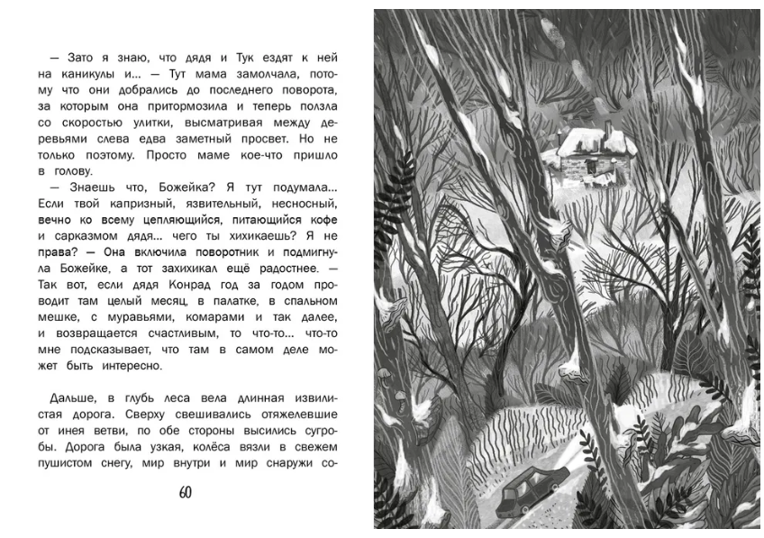 Попробуйте представить, что вам предстоит провести свои зимние каникулы у странной тётушки, которая живет в самом центре темного леса? Интересно, какие это будут каникулы?! Главный герой нашей книги думает, что будет скучно!!! И это при том, что на каникулы он отправляется с маленьким чудищем, ворующим тапочки, и самым настоящим ангелом-хранителем. К счастью, вскоре обнаруживается, что снежная пустыня таит много сюрпризов… Будет немного страшно и ужасно смешно! Художник: Вырт Паулина