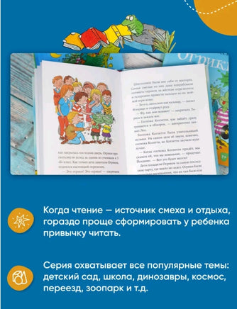 Let's explore space with the brave Ogriks! You'll learn the hottest facts about every planet in our solar system, fly through a meteor cloud, and even go on a spacewalk with Grandpa Ogri! The Ogrik's Ultimate Book About Planets and Stars! Suitable for joint and independent reading for children from 3 years. Suitable for joint and independent reading from 3 years old. "The Adventures of the Ogriks" is 5,000,000 copies sold in the world, bright characters and colorful illustrations, stories that the whole family will laugh at. Children all over the world love Ogres and follow their adventures, and in return they teach children to fantasize, think imaginatively and not be afraid to express themselves. After all, a little prank never hurt anyone! For children from 3 years old