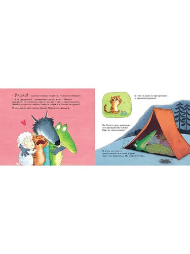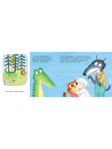 In a house with a carrot roof, a sheep named Ragu, a wolf named Wok and a crocodile named Omlet lived together and cheerfully. Once Omelette ran for a stick, and brought a tiger cub - soft and fluffy, real Plush! The sheep wanted to keep Plush for herself, but the wolf said that the tiger cub had to be taken home. As they walked up the river, Plusha did not lag behind Ragu a single step: he clung to the sheep and purred affectionately in her ear. "What an adorable baby!" - said the sheep and everyone who met them on the way. And only Omlet noticed something that others did not see: the tiger cub loves mice and fish for a reason, but to eat! And he also has an unusual interest in a sheep! Omlet's suspicions were confirmed when the tiger cub brought them home to mom and dad tigers. And everything could have ended very sadly if it were not for Omelet, who could hardly be called charming, but who turned out to be a faithful and devoted friend!