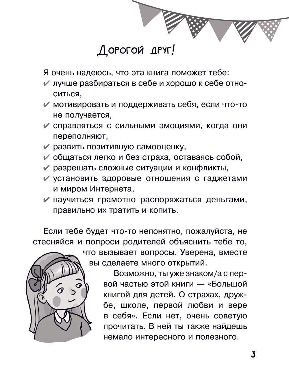 В новом сборнике "Большая книга о самооценке, понимании себя и других, гаджетах и деньгах" известный семейный психолог Ирина Чеснова предлагает юным читателям – младшим и средним школьникам – поговорить обо всем, что волнует. Как понимать себя? Как справляться с эмоциями, если они переполняют? Как мотивировать себя, когда трудно, противостоять обидчикам, не бояться ошибок и сохранять хорошее отношение к себе, даже если что-то не получается.