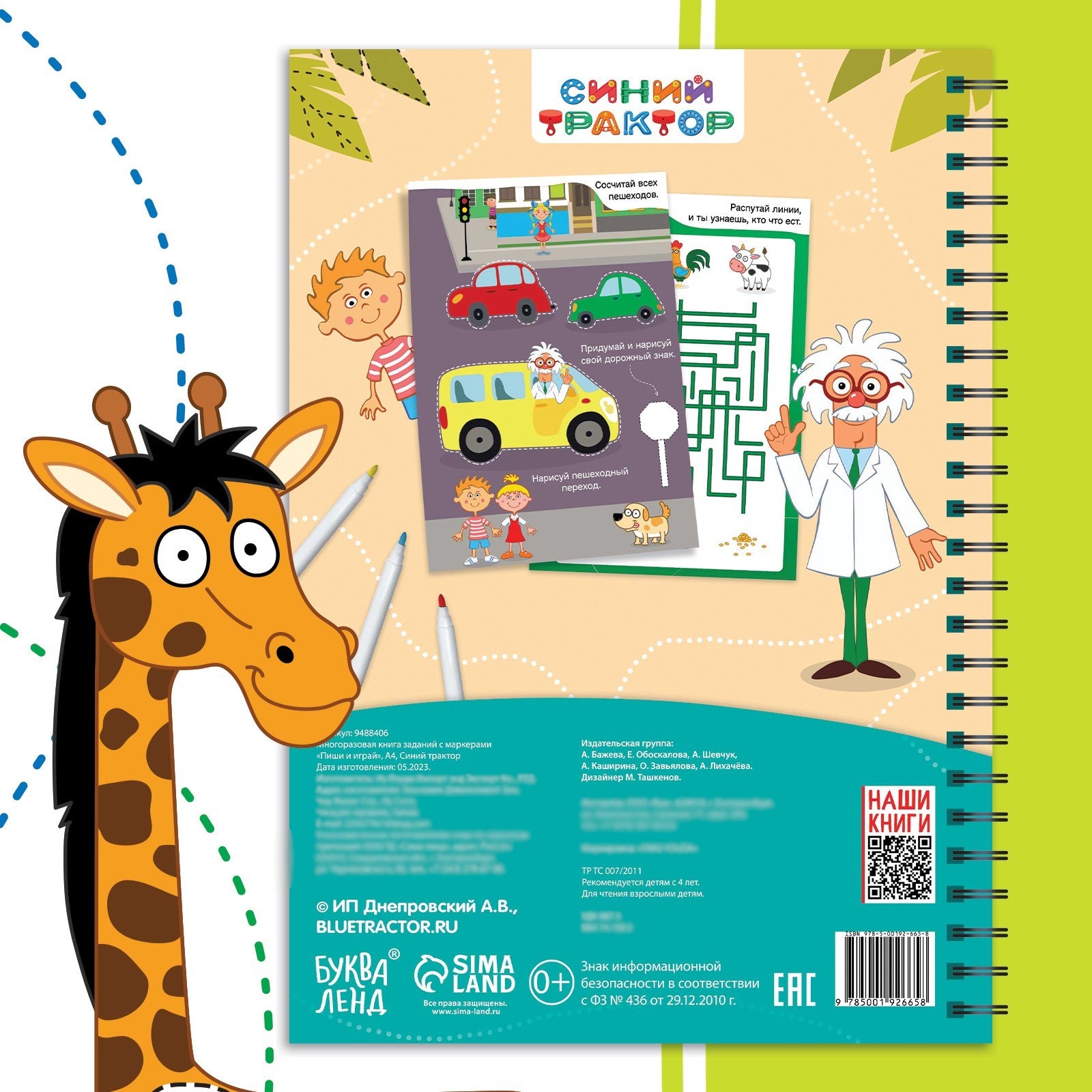 Пиши и играй. Многоразовая книга + 5 маркеров А4 Синий трактор - [купить в сша] - [Bookvoed US]