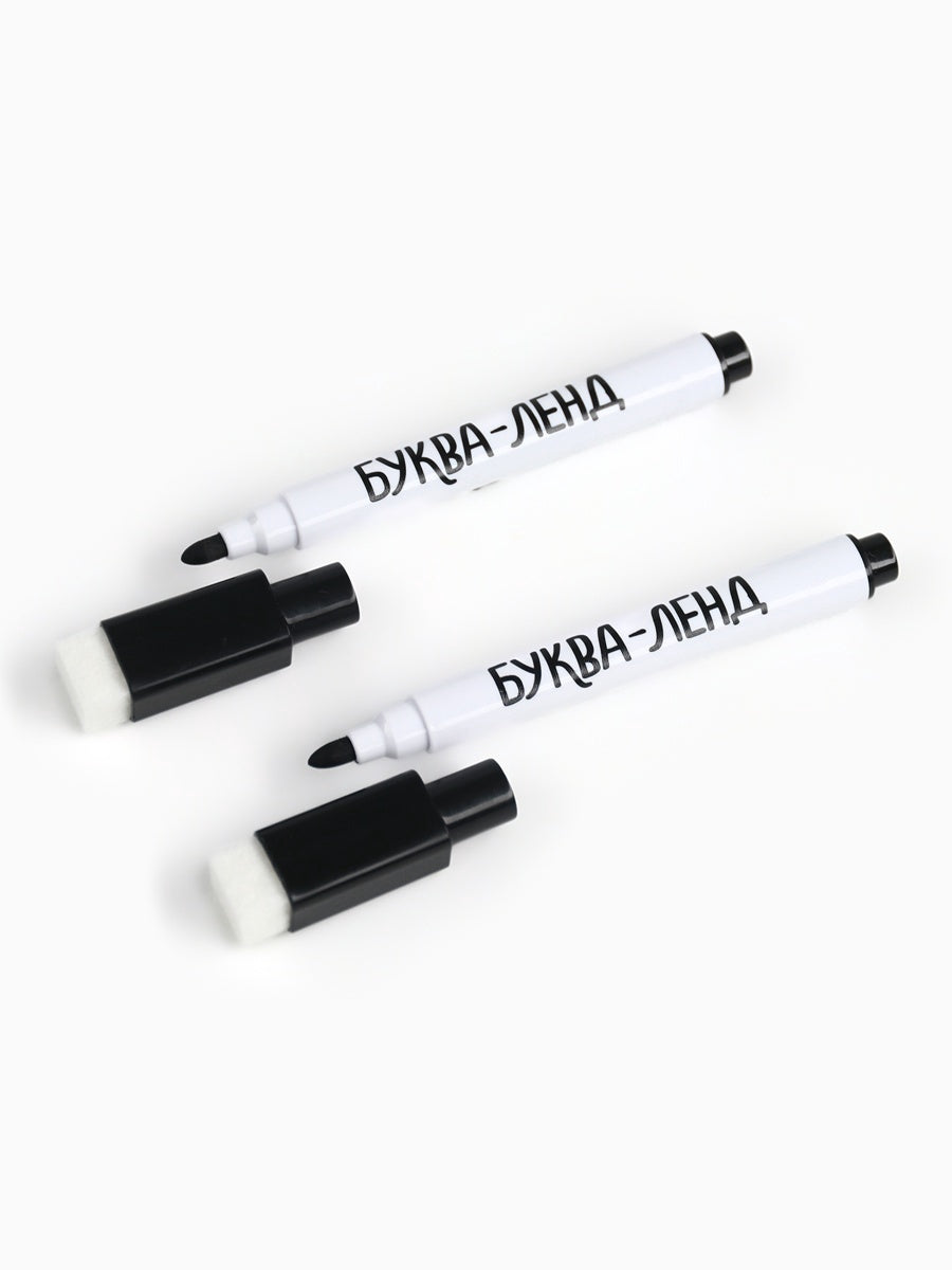 • Два маркера, подходящих для рисования на страницах и их последующего стирания.