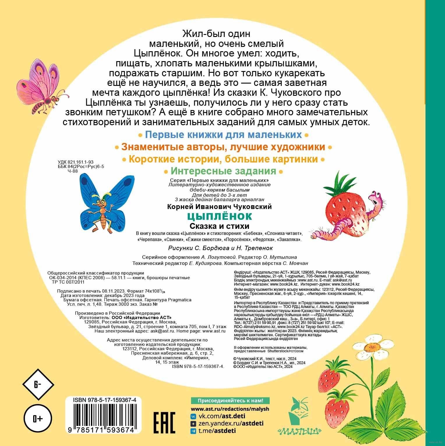 Цыплёнок. Сказка и стихи. К. Чуковский. Первые книжки для маленьких Printed books АСТ
