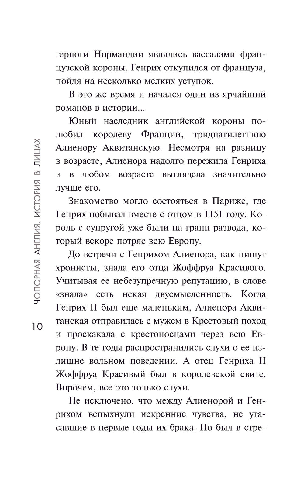 Чопорная Англия – книга, в которой собраны увлекательные исторические зарисовки о самых легендарных, жестоких и революционных личностях в истории Англии. Существовал ли Робин Гуд на самом деле? Почему королева Елизавета держала при дворе пирата? Были ли прокляты короли из династии Стюартов? Почему XIX век называют Викторианской эпохой? Многочисленные жены Генриха VIII, "кровавое" правление его дочери – Марии Тюдор, праздник жизни Веселого короля Карла II и "золотой век" королевы Виктории – далеко не все события, оставившие свой неизгладимый след в культурном облике архипелага.