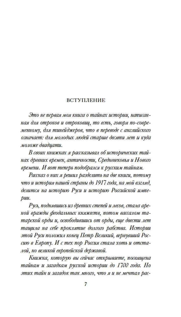 Мы уже исследовали "Тайны Древнего мира" и "Тайны античного мира", "Тайны Средневековья" и "Тайны Нового времени". И теперь нас ждет новое увлекательное путешествие: на сей раз в прошлое нашей страны.