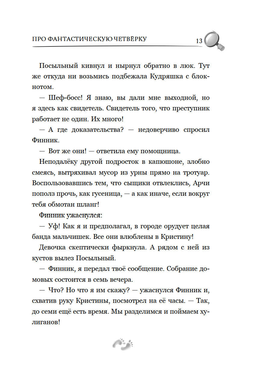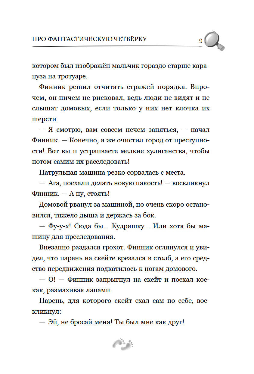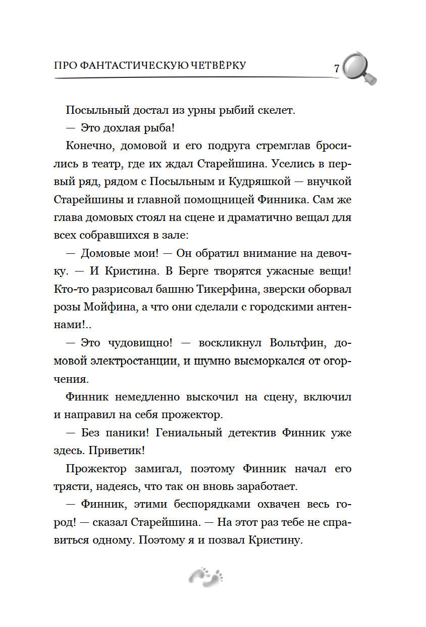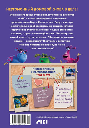 Неугомонный домовой снова в деле! Финник и его друзья открывают детективное агентство "ЧИПС", чтобы расследовать загадочные происшествия в Берге. Когда за дело берутся четыре исключительно профессиональных сыщика, история обречена на счастливый финал. Но дела становятся сложнее, а преступники ещё хитрее… Что за жуткий ночной монстр пугает прохожих? Кто похитил часовую башню – символ Берга? И неужели у детектива Финника появился конкурент, не менее талантливый сыщик?