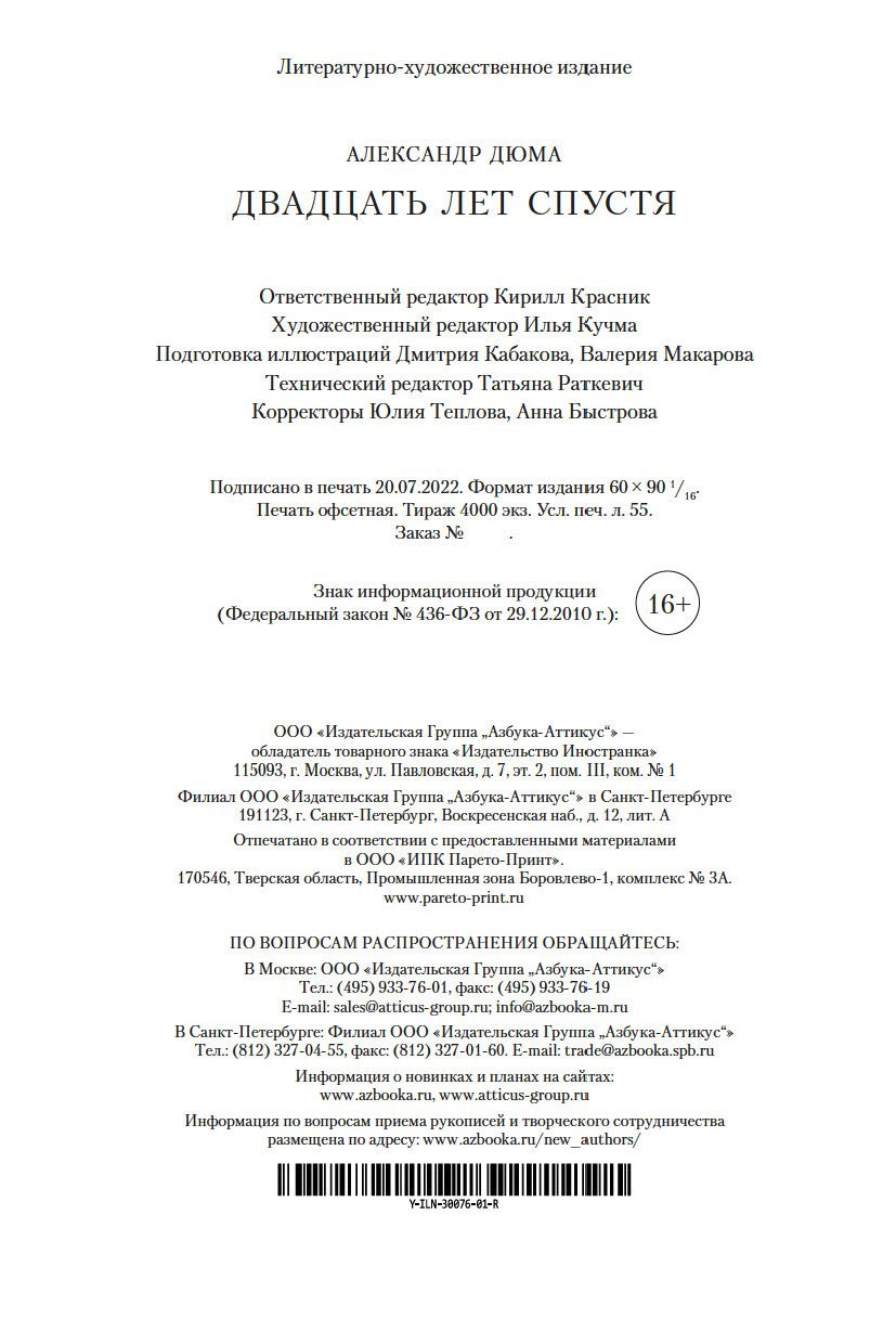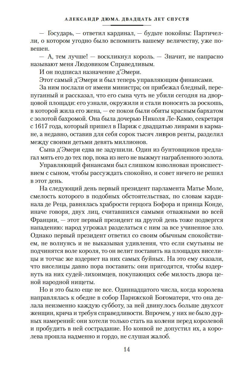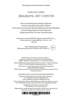 Блистательный роман Александра Дюма "Двадцать лет спустя" о чести и гордости, об отваге и любви, о верных клинках и верных сердцах написан вслед за романом "Три мушкетера" и является его прямым продолжением. В нем столько же остроумия, занимательности и неожиданных поворотов, как и в первой книге. Приключения отважных мушкетеров – д'Артаньяна, Атоса, Портоса и Арамиса – продолжаются среди грозных исторических событий, разбросавших преданных друзей по разные стороны баррикад.