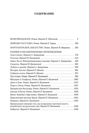 В настоящем издании печатаются три известных ее романа: "Мэнсфилд-парк", "Доводы рассудка" и "Нортенгерское аббатство", а также ранние произведения. В их числе впервые на русском ряд набросок, заметок, незавершенных романов и пьес, читать которые одно удовольствие. В этих "пробах пера" уже вполне проявили себя талант и обаяние, столь знакомые читателям по лучшим произведениям Джейн Остин.
