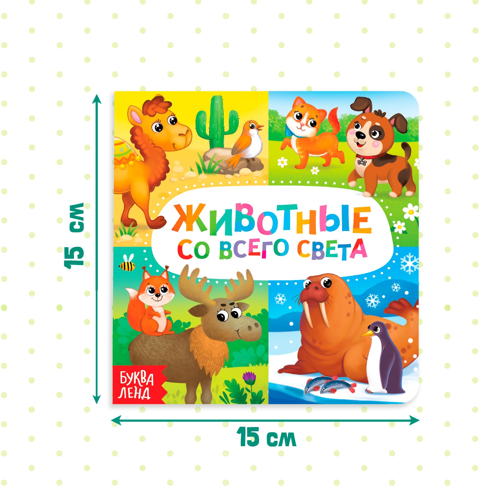 Картонная книга «Животные со всего света» — это идеальный выбор для развития любознательности вашего малыша! Красочная и познавательная книга для малышей, которая познакомит ребёнка с животными разных континентов.