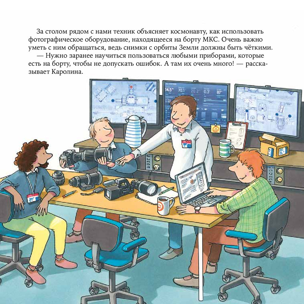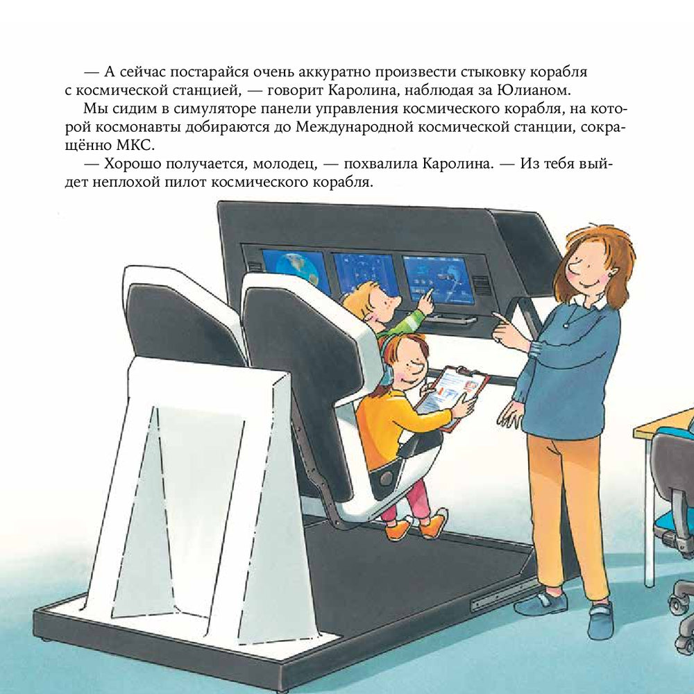В этой книге девочка Шарлотта вместе с мамой своего друга Каролиной знакомится с профессией космонавта. Вы узнаете, как космонавты готовятся к полёту, сколько длится полёт космического корабля, что находится в ранце для выхода в открытый космос и многое другое!