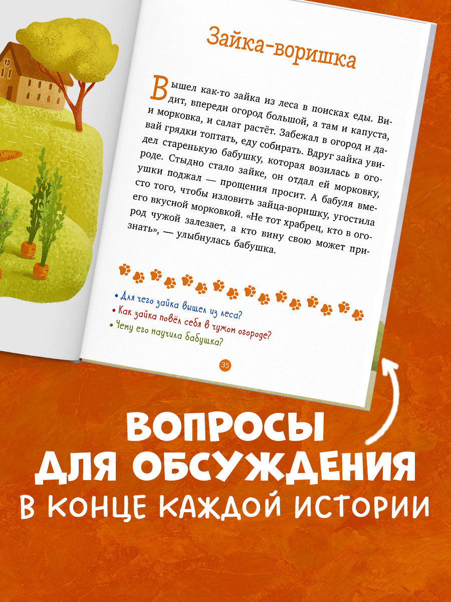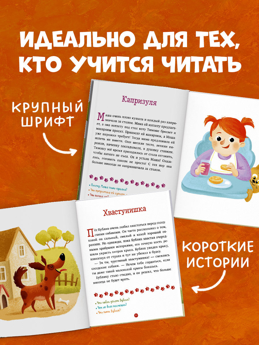 Каждая сказочная история – это ситуация, в которую может попасть любой ребенок: Маша капризничала за столом, пока не попробовала сама приготовить обед и не поняла, как это непросто. Ева не любила убирать в комнате, и из-за этого потерялся ее любимый плюшевый мишка. Но не только дети стали героями этих историй: зайчики, котята, поросята и лягушата тоже часто шалят и попадают в разные приключения.