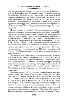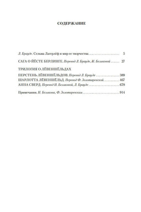 "Сага о Йесте Берлинге" – одна из знаменитейших книг шведской литературы. Необыкновенное сочетание фольклора и действительности, народных легенд и преданий с классическими сюжетными перипетиями реалистической драмы создают необыкновенную атмосферу и ставят этот роман в ряд наиболее оригинальных и увлекательных произведений девятнадцатого века. Впрочем, эти же слова применимы ко всем произведениям шведской писательницы Сельмы Лагерлеф. Трилогия о семье Левеншельдов – великолепная сага, охватывающая историю пяти поколений, полная таинственных связей, роковых предзнаменований, невероятных приключений, и все это на фоне реальных исторических событий.