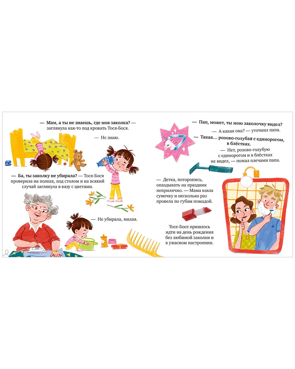 Издательство Clever представляет веселую книжку-картинку "Тося-Бося и несметные сокровища" популярного автора Юлии Весовой – захватывающий сюжет, понятная детям героиня книги для малышей, смешные сюжетные иллюстрации Clever книги и важная тема для обсуждения с ребенком. А еще на форзацах книжки для детей 3 лет вы найдете развивающие задания для девочек и мальчиков.