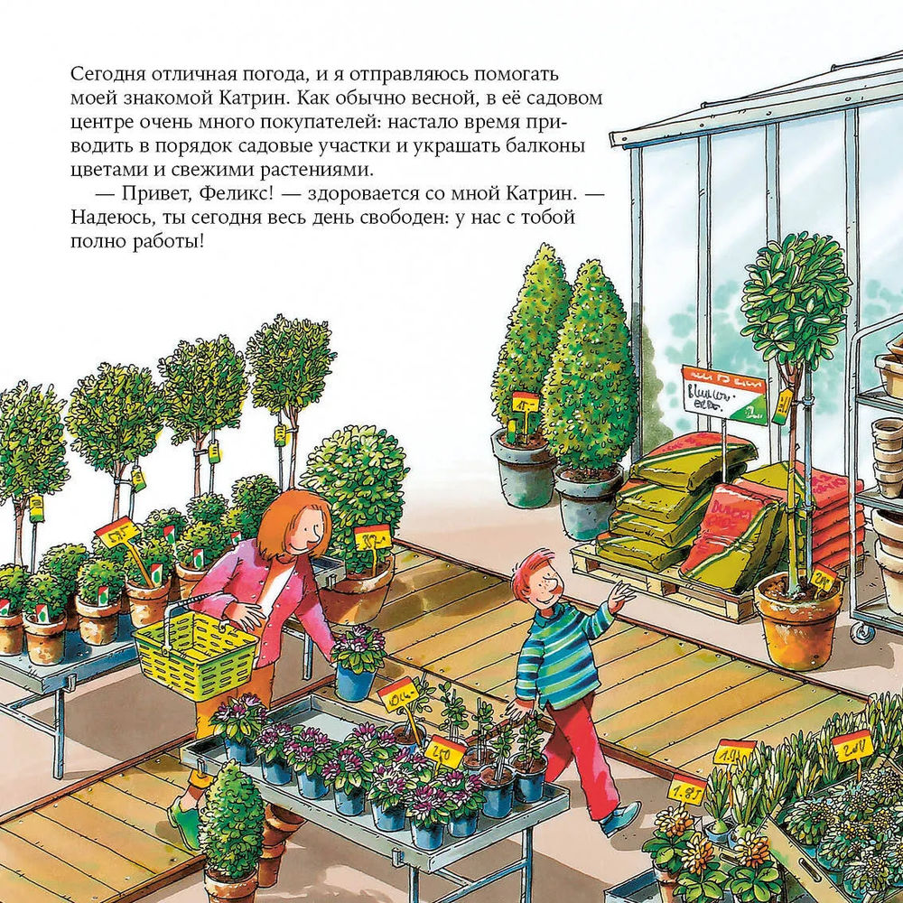 Один день из жизни хозяйки садового центра расскажет ребятам много интересного о профессии садовода: зачем нужны теплицы, как ухаживать за рассадой, для чего растениям удобрения и многое другое.