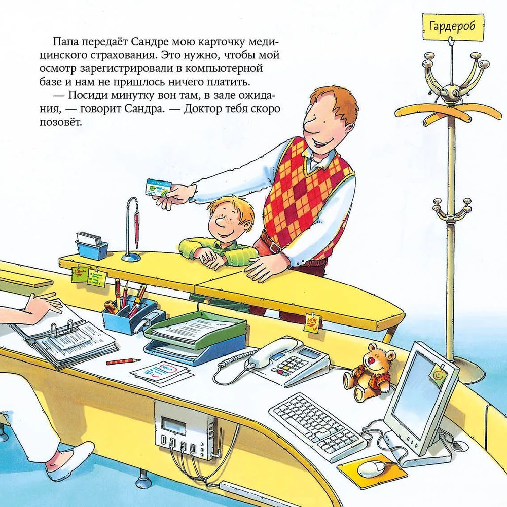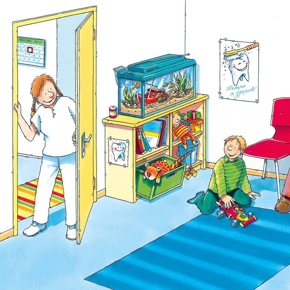 Все книги построены по принципу "один день из жизни...": герои историй, дети, приходят в гости на работу к своим взрослым знакомым. В этой мальчик приходит на плановый осмотр к стоматологу и узнаёт много интересного о работе зубного врача: какие кабинеты есть в поликлинике, какие исследования в них проводят, как называются инструменты, которыми пользуется врач. И, конечно, как правильно ухаживать за зубами, чтобы они были здоровыми.