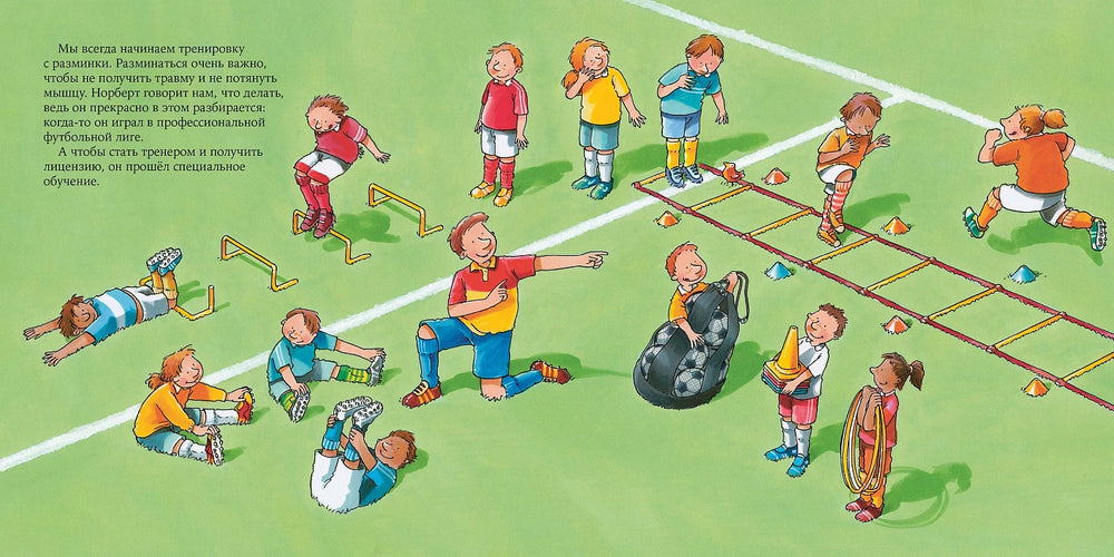 В этой книге мальчик Штеффен вместе со своим другом Норбертом знакомится с профессией футбольного тренера. Вы узнаете, как тренируются футболисты, что такое командная работа, как проходит футбольный матч и многое другое!