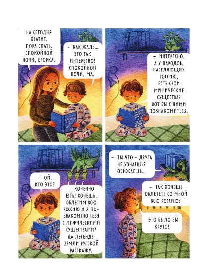 Добрый трехглавый дракон Горыныч и мальчик Егор приглашают вас в невероятное путешествие! Выбери свое приключение — полетать под звездным небом над Кремлем, погрузиться в тайны Ладожского озера, поискать затерянные книги Якова Брюса, разузнать секреты сфинксов, послушать песни русалок и даже разгадать послания древних камней.