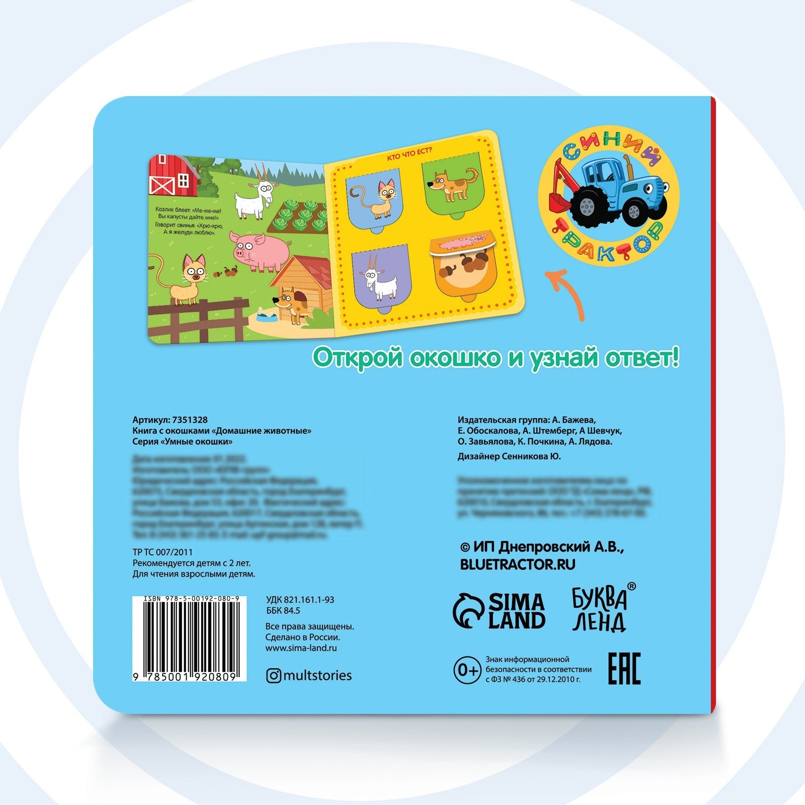 Книжка с окошками «Домашние животные с Синим трактором» — это не просто игра, а источник радости и вдохновения для маленьких исследователей. Подарите ребёнку возможность узнавать мир домашних питомцев с удовольствием!