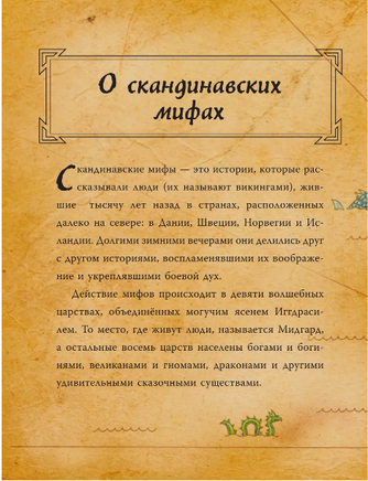Уникальный сборник самых захватывающих мифов Скандинавии! Скандинавские мифы это истории, рассказанные викингами, жившими тысячу лет назад в Дании, Швеции, Норвегии и Исландии. Долгими зимними вечерами они делились друг с другом рассказами, воспламенявшими их воображение и боевой дух. Это истории про волшебные миры, величественных богов, гигантских драконов, чахнущих над золотыми горами, и гениальных гномов, живущих глубоко под землей, пересказаны для детей доступным языком и дополнены современным комиксным рисованием. Эта книга одна из лучших и самых доступных адаптаций норвежской мифологии, она познакомит маленьких читателей с культурой Скандинавии и поможет расширить кругозор ребенка. Соберите всю коллекцию мифов!