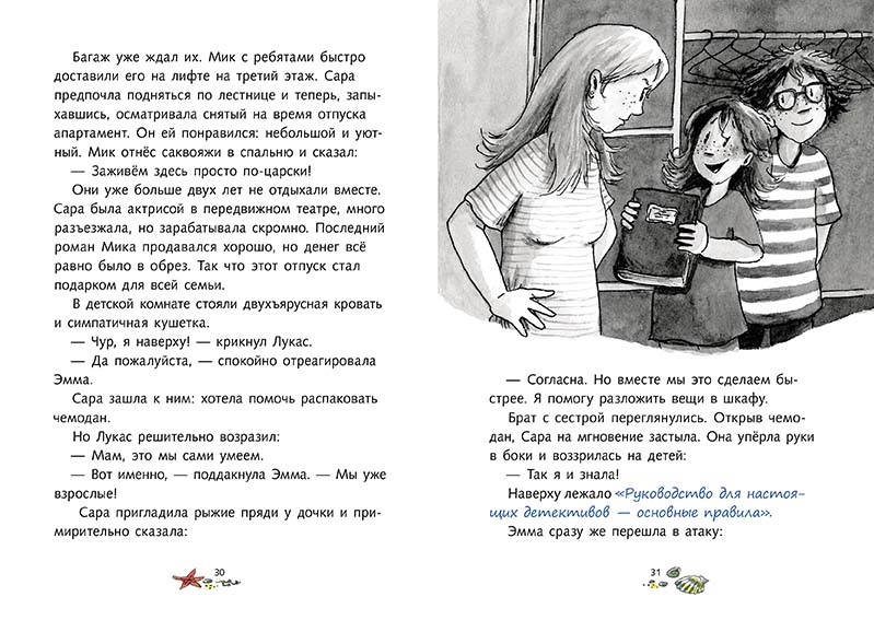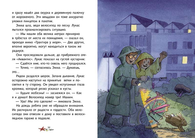 Как хорошо иметь при себе «Руководство для настоящих детективов – основные правила» двоюродного дедушки Теодора Янссена. Недолго думая, Эмма с Лукасом приступают к расследованию нового дела. Им помогает девочка с прикольной внешностью – с обритой наполовину головой и серёжкой из крашеных чаячьих перьев. Вместе они не только находят свои велосипеды и выслеживают главаря коварных похитителей, но и спасают жизнь полицейскому.