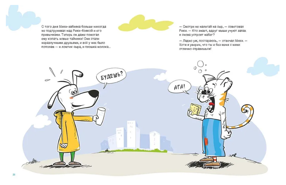 Благодаря коту Рики-бояка поверил в собственные силы и научился отстаивать свои права, ну а Мики-забияка стал гораздо терпимее к чужим слабостям и научился держать себя в руках.