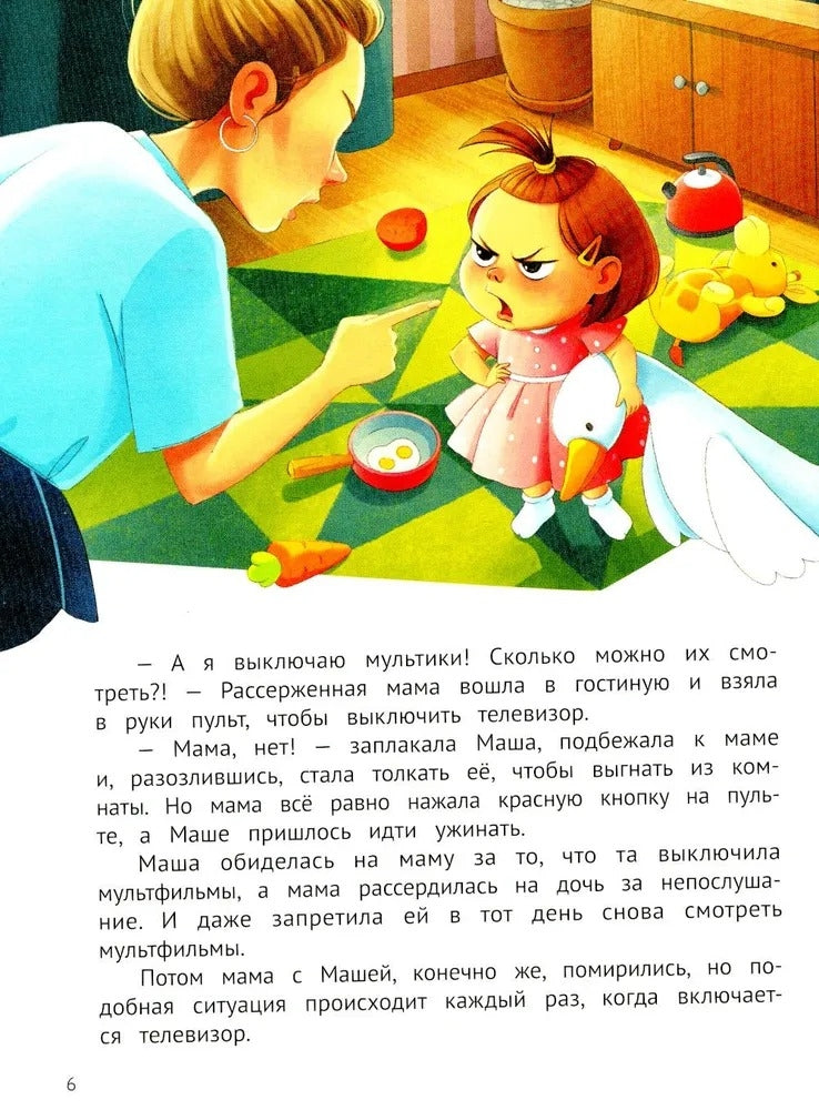 В каждой истории рассматриваются повседневные и понятные современным детям ситуации: Маша ругается с мамой, потому что та выключает мультфильмы, Вова не знает, чем себя занять, когда ему не дают телефон, Марк отказывается есть без планшета и т. д. Вместе с героями этих историй читатели смогут понять важность ограничения времени, проведённого в виртуальном мире, найти баланс между цифровым и реальным миром.