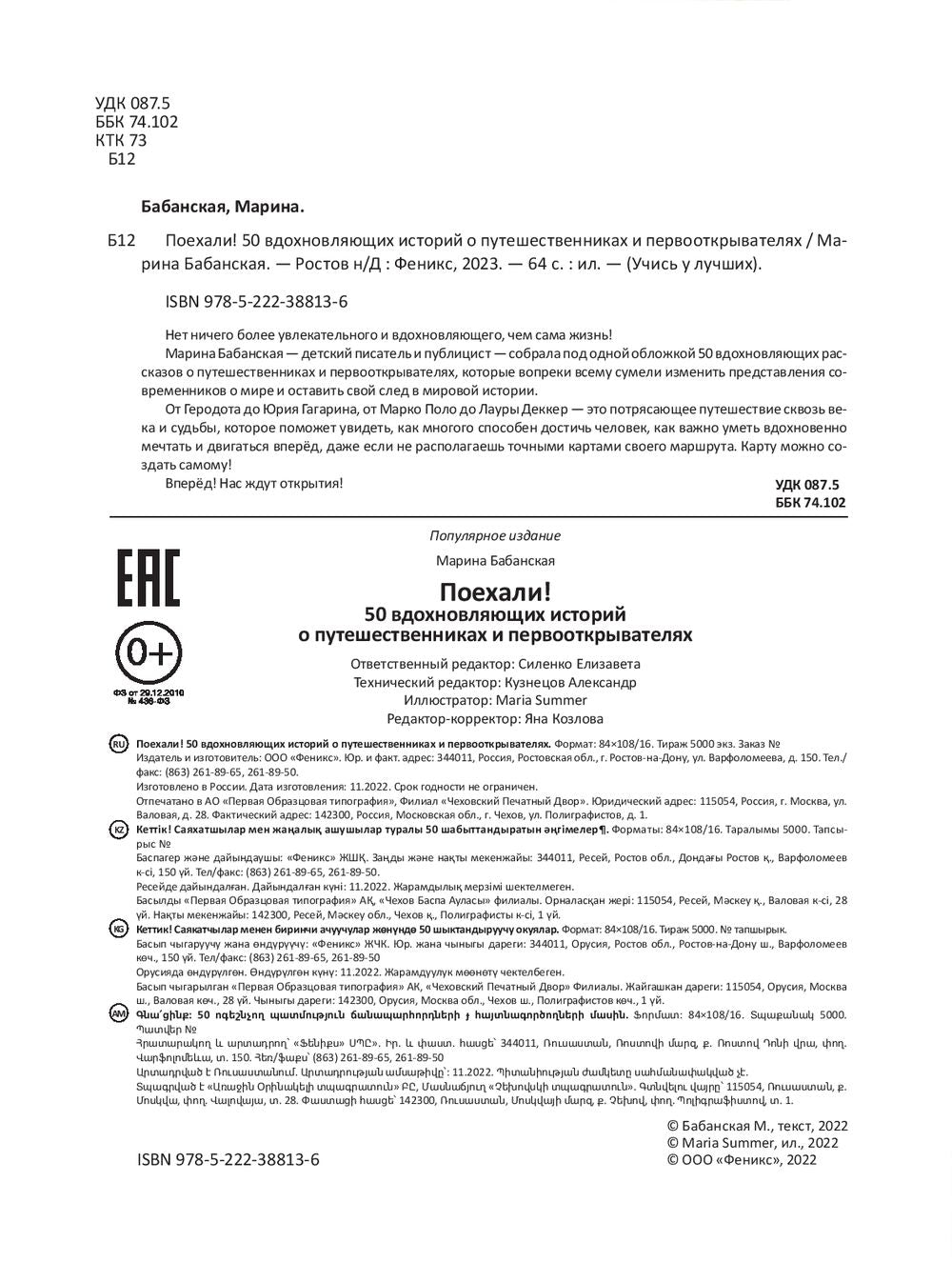 Марина Бабанская – детский писатель и публицист – собрала под одной обложкой 50 вдохновляющих рассказов о путешественниках и первооткрывателях, которые вопреки всему сумели изменить представления современников о мире и оставить свой след в мировой истории.