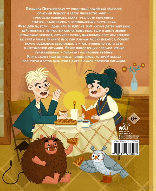 Людмила Петрановская — известный семейный психолог, опытный педагог и автор множества книг — прекрасно понимает, какие трудности переживает ребёнок, сталкиваясь с неожиданными ситуациями. «Что делать, если... дома что-то идёт не так» научит детей уверенно действовать в непростых обстоятельствах: если в дверь звонит незнакомый человек, случился пожар, выключили свет или ребёнок застрял в лифте. В книге простым языком рассказывается, почему важно соблюдать безопасность и как правильно вести себя в критической ситуации. Яркие иллюстрации сделают чтение увлекательным и поднимут настроение ребёнку.