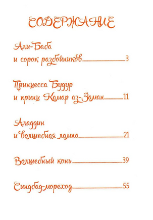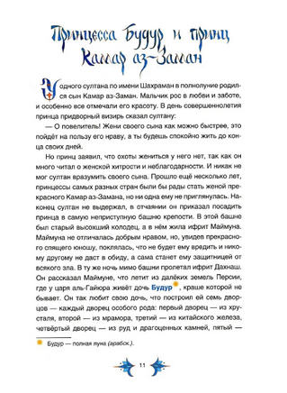 Сказки «Тысячи и одной ночи» — одни из самых известных памятников мировой литературы. Они создавались в золотой век ислама и хранят в себе наследие многих восточных культур. Несколько веков сказки являются источником вдохновения для художников, композиторов, входят в список ста лучших книг всех времён и народов. В книгу вошли одни из самых известных и популярных сказок, рассказанных прекрасной Шахерезадой, — про Алли-Бабу и сорок разбойников, Аладдина, принцессу Будур, волшебного коня и Синдбада-морехода.